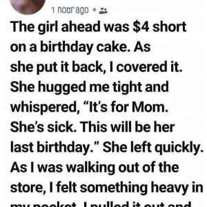 A quiet trip to the store took an unexpected turn when I noticed a young girl in line holding a birthday cake, her hands shaking. When she…